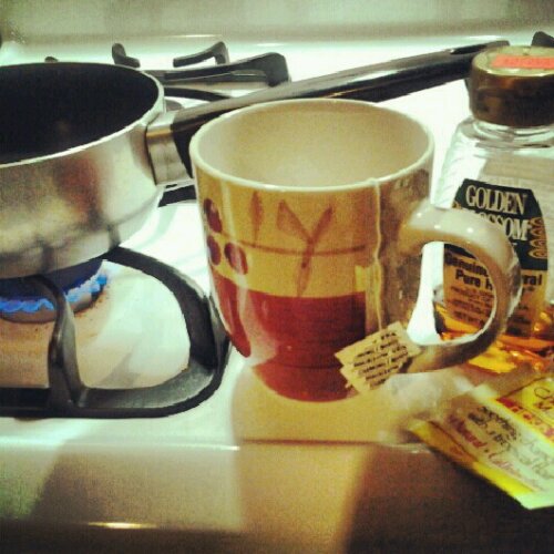 This here, is my mom’s concoction. It isn’t exactly tea; but I figured I’d throw it in anyway due to the recent drop in temperature and threats of snow coming our way during this glorious flu “epidemic.” Just boil some water, add 2-3 tablespoons of honey and a few orange slices. For those of you who aren’t tea drinkers this is a great substitute. It’s a definite cold kicker! This is all I lived on when I was sick a few months ago. I was drinking tea day and night trying to sooth the fire in my throat. I was hitting a tea overload, so this was definitely a welcomed change of pace.