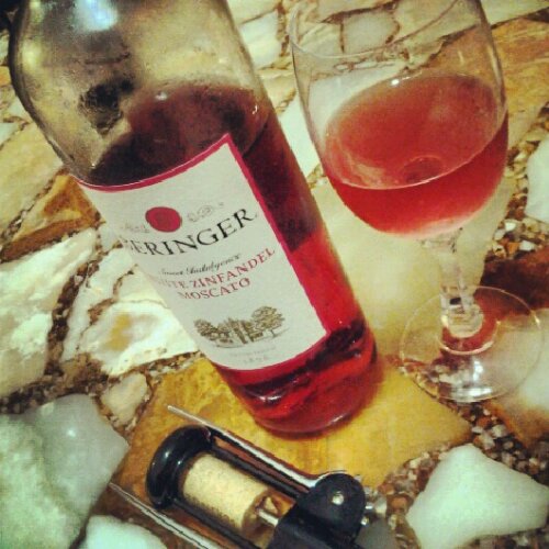 This next bottle of wine is Beringer’s White Zinfandel Moscato,