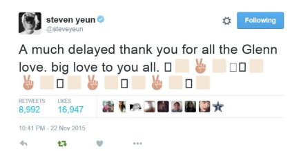 steven yeun thank you twitter Published November 23, 2015 at 795 × 401 in Send Up Green Balloons For Glenn! ← Previous Next →